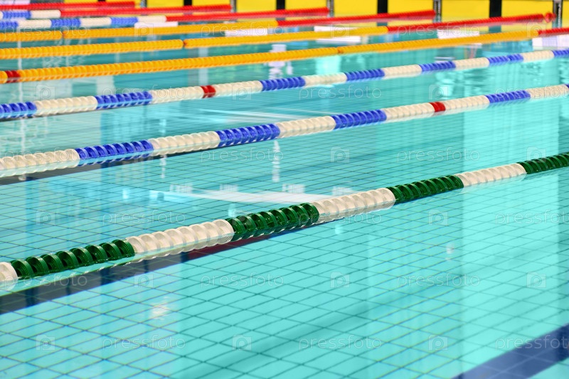 Чистые полосы бассейна обозначены красочными, полосатыми плавающими разделителями
