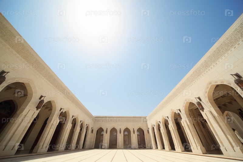 ОМАН - 13 апреля 2010 года: здание с арками внутри Великой мечети в Омане