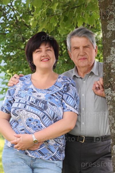 Старый старший стоял рядом с деревом и обнимал свою взрослую дочь,