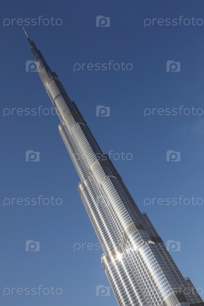 ДУБАЙ - 17 АПРЕЛЯ: вершина небоскреба Бурдж-Дубай, диагональная композиция