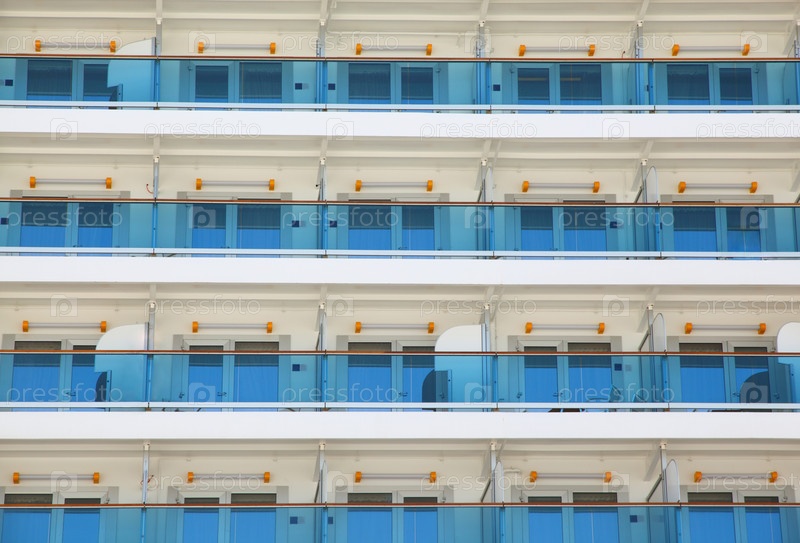 Синие стеклянные балконы линии белые палубы круизных судов