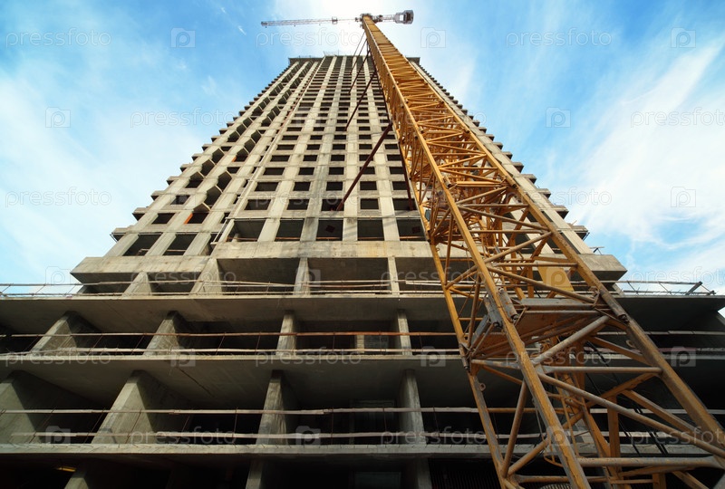 МОСКВА - 27 СЕПТЕМБРА: Высокое здание под строительством с краном в