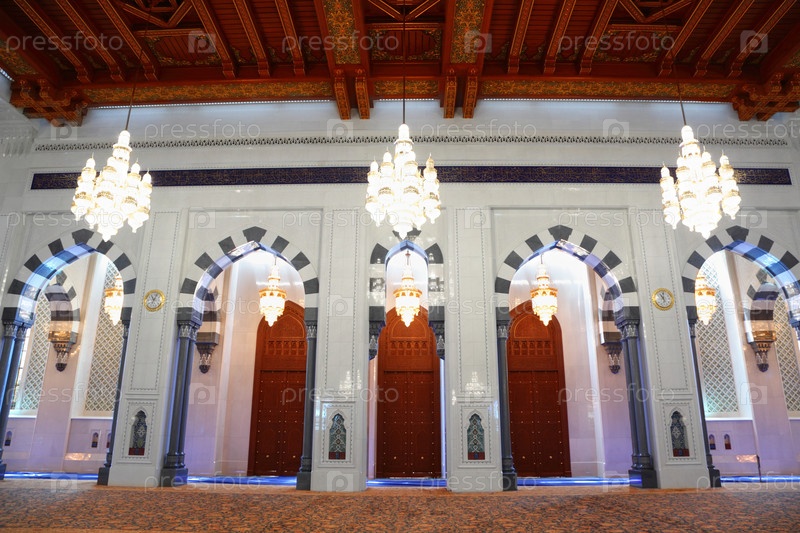 ОМАН - 13 апреля 2010 года: несколько больших красивых люстр в зале Гранд