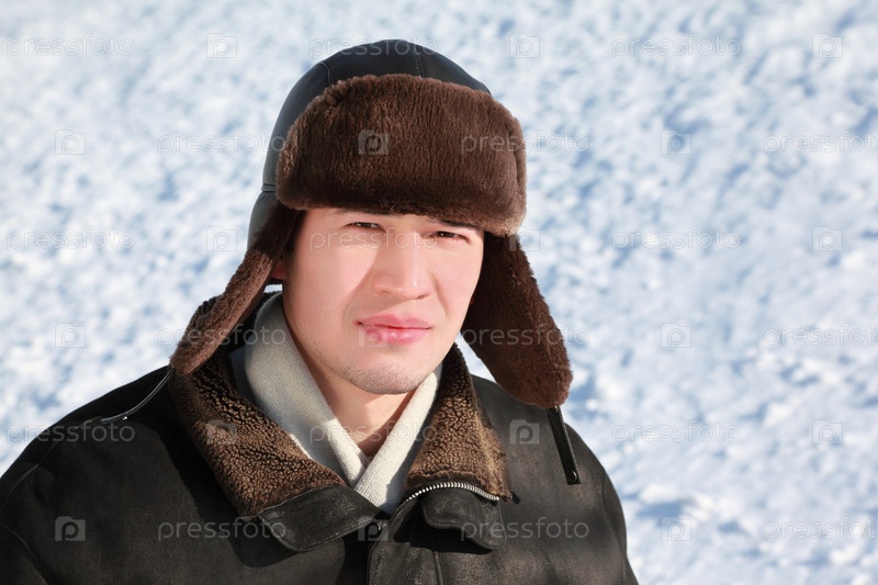 Молодой человек стоит в ушной шляпе зимой и сосредоточенно смотрит