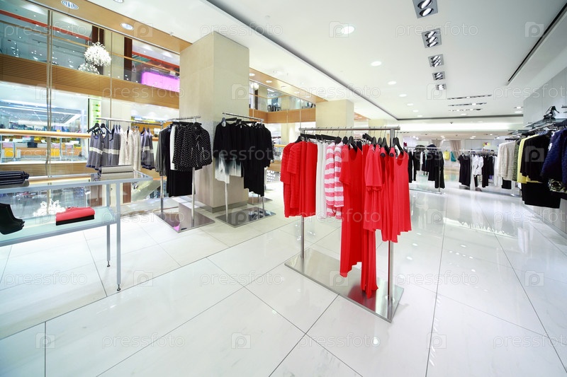 Отдел яркой женской одежды находится в магазине