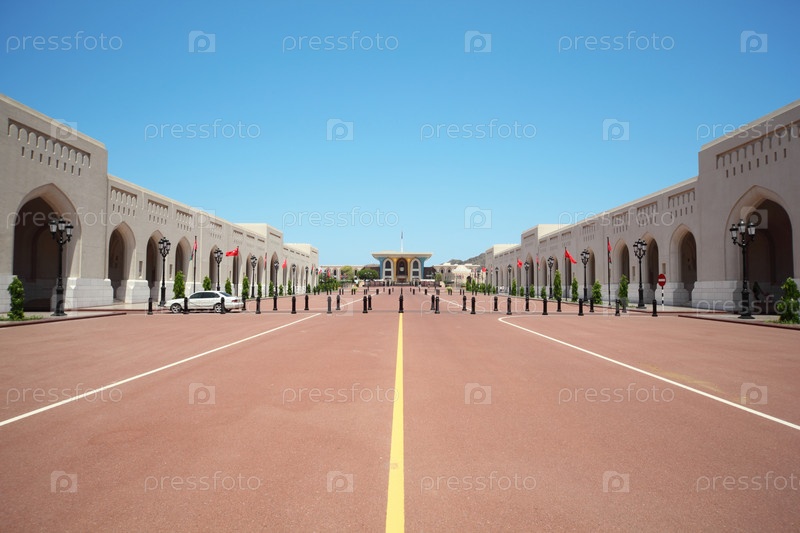СУЛТАНСКИЙ ДОМ В Омане - 14 апреля: Турецкий и оманский флаги на главной