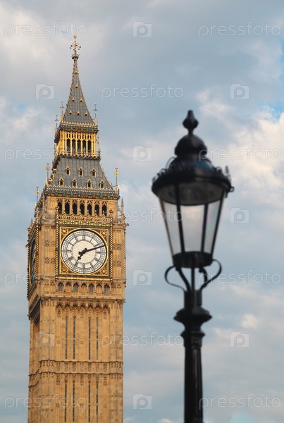 Биг-Бен и фонарь.Фокусируйтесь на Биг-Бене.Биг-Бен - это один из лондонских