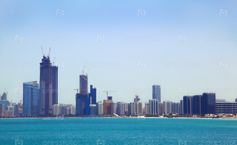 Вид с моря на здания и небоскребы в Абу-Даби
