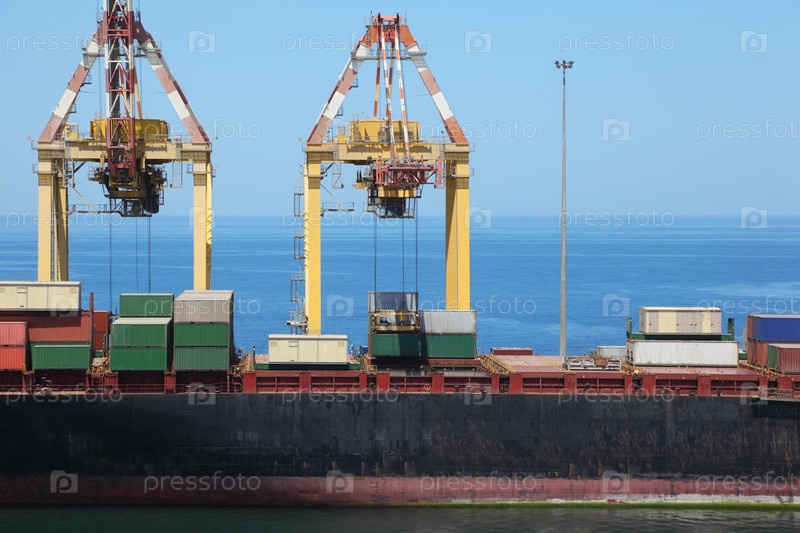 Большие грузовые доки рядом с желтыми портовыми кранами