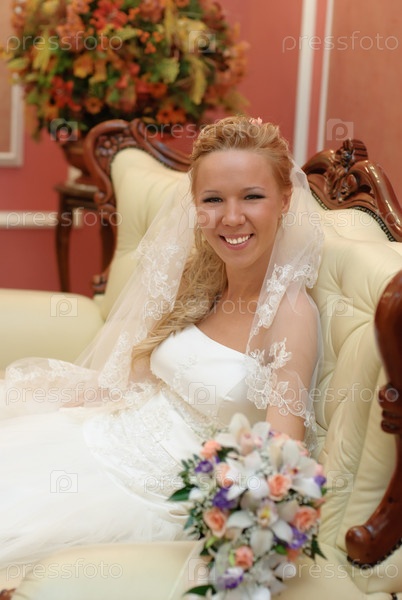Портрет невесты с букетом в руках внутри