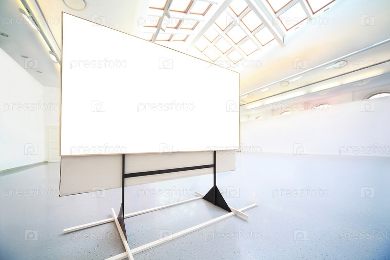 Пустой белый экран стоит в яркой современной комнате