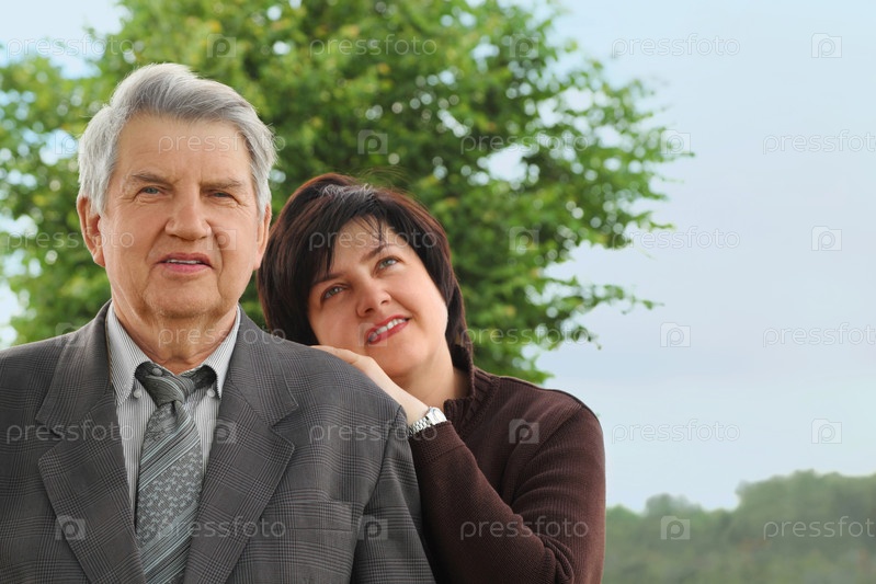 Портрет старого старшего в костюме, его взрослая дочь опирается на его портрет