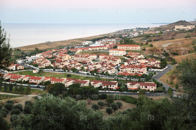 Прибрежный город с красными черепичными крышами и извилистыми дорогами