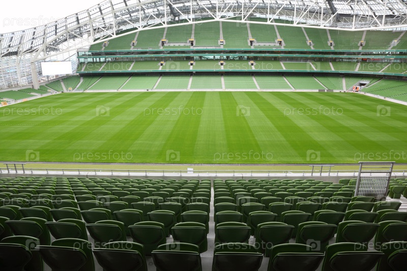 ДУБЛИН - 10 июня 2010 года: ряды зеленых сидений на пустом стадионе
