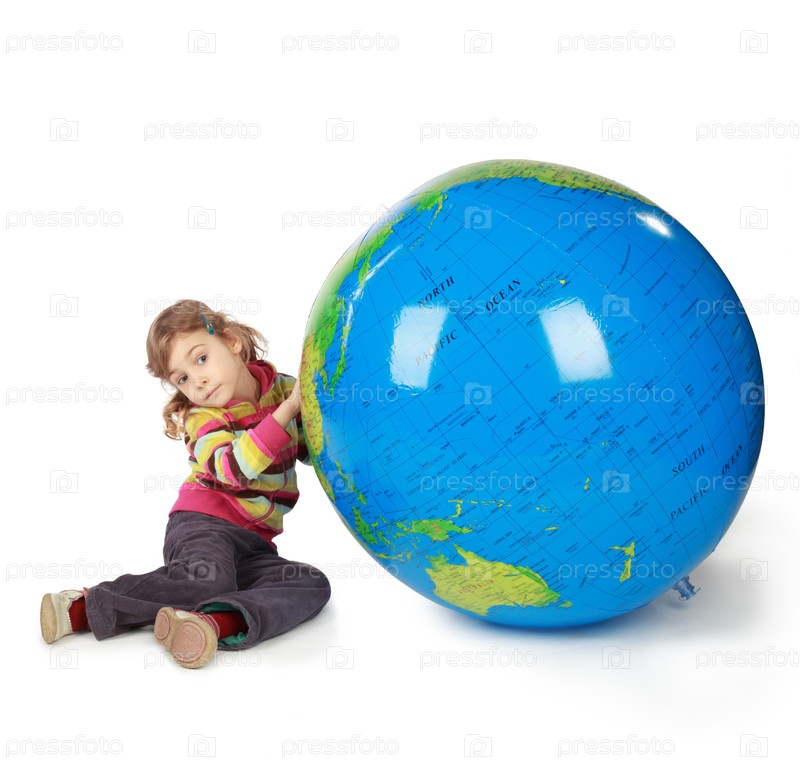 Маленькая девочка с огромным глобусом выберите место, где она будет жить