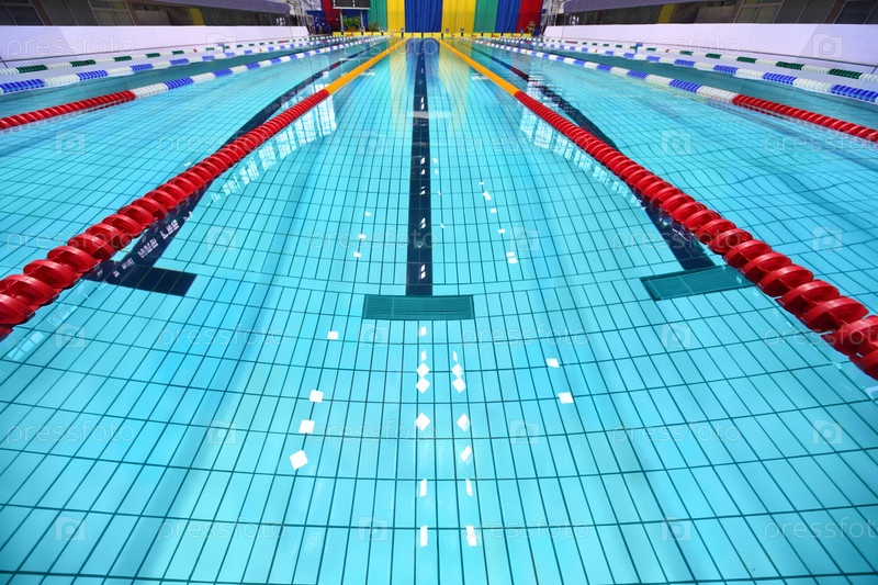 Чистый синий бассейн с красными разделителями полосы движения