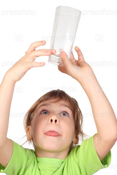 Ребенок держит стекло над головой обеими руками