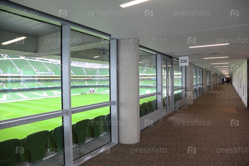 ДУБЛИН - 10 ИЮНЯ: Коридор и ряды зеленых, складывающихся сидений в большой