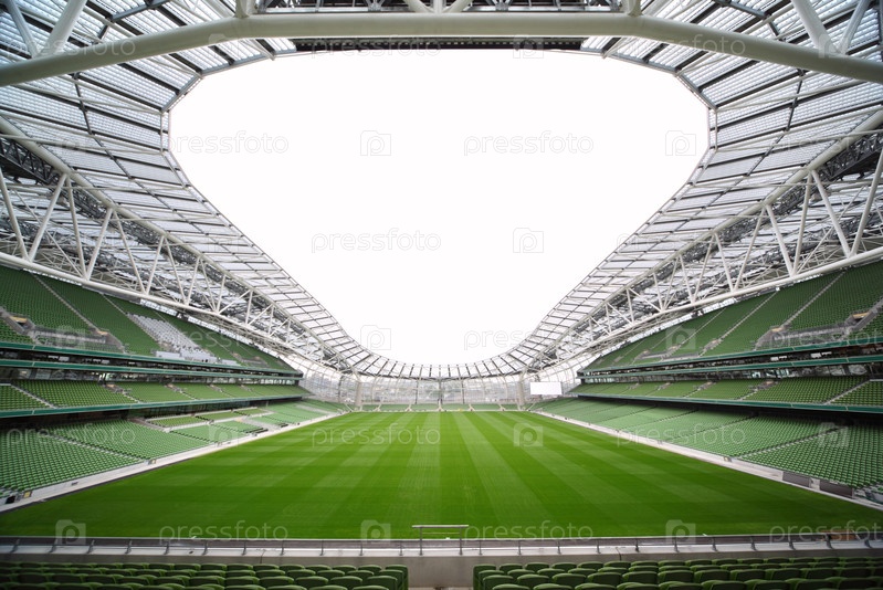 ДУБЛИН - 10 июня 2010 года: ряды зеленых сидений на пустом стадионе
