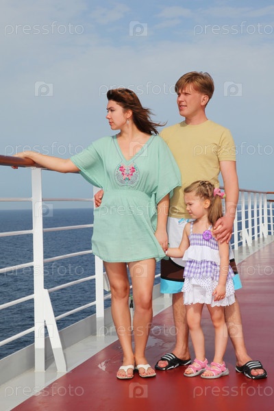 С дочерью, стоящей на палубе круизного лайнера с полноценным телом и внешним видом