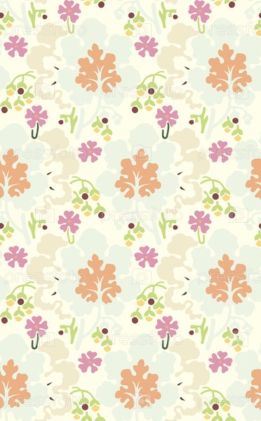 Растеризованная копия: Бесшовный цветочный рисунок (листья, цветки) в эклектическом стиле конца 19-го века
