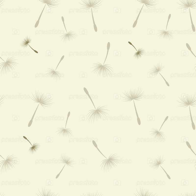 Ручно нарисованные семена одуванчика бесшовный векторный рисунок, текстура органического рассеяния, нейтральный фон
