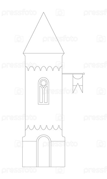 Растрированная копия красочная страница Средневековая крепость башня с флагом изолирована на белом фоне, вырезка готова