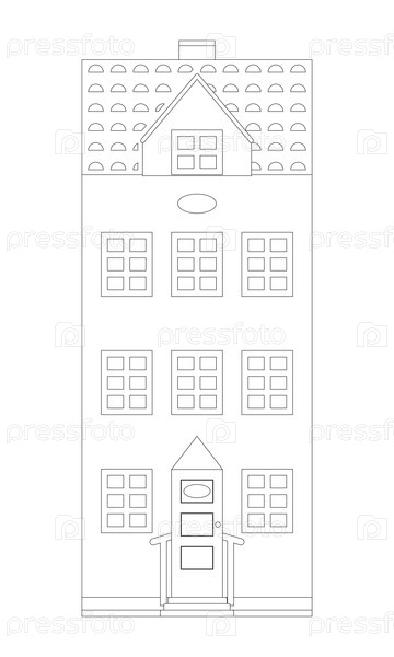 Растеризованная копия красочная страница средневековый дом изолированный на белом фоне, вырезка готова
