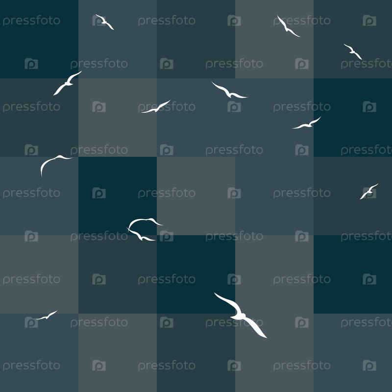 Бесшовный рисунок: белые чайки летают в голубом небе