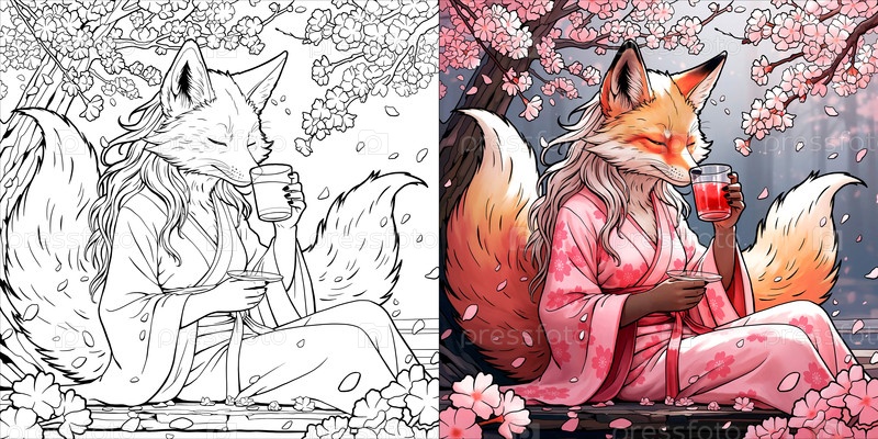 Кицуне элегантность под вишневыми цветами