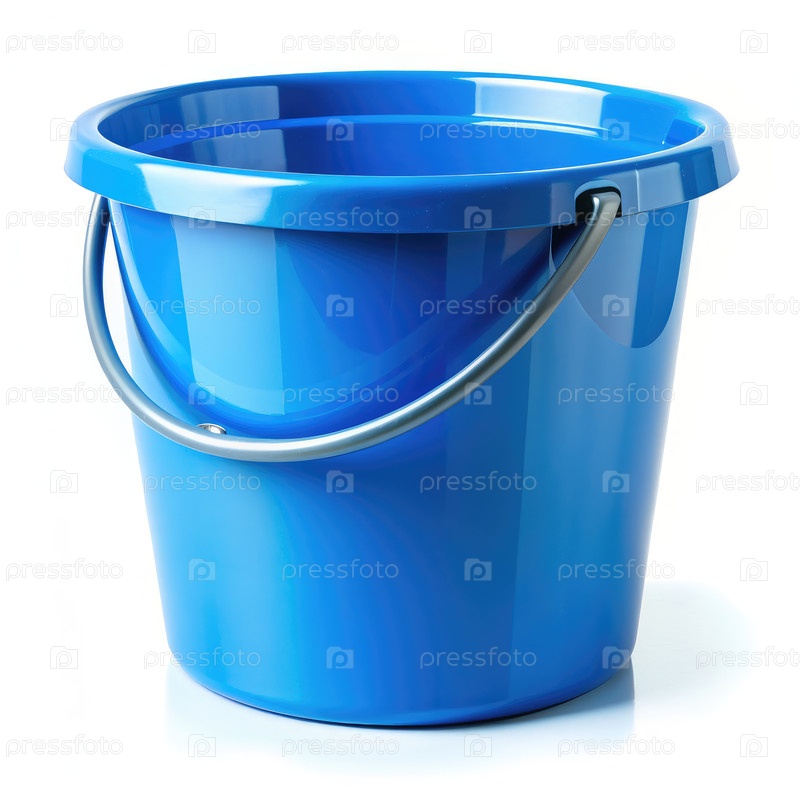 Пластиковое ведро с ручкой на белом фоне. генеративный синий AI