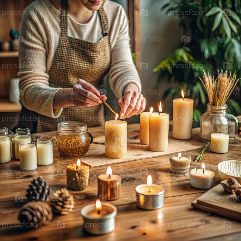 Создание красивых декоративных свечей ручной работы на деревянном столе в уютном рабочем помещении