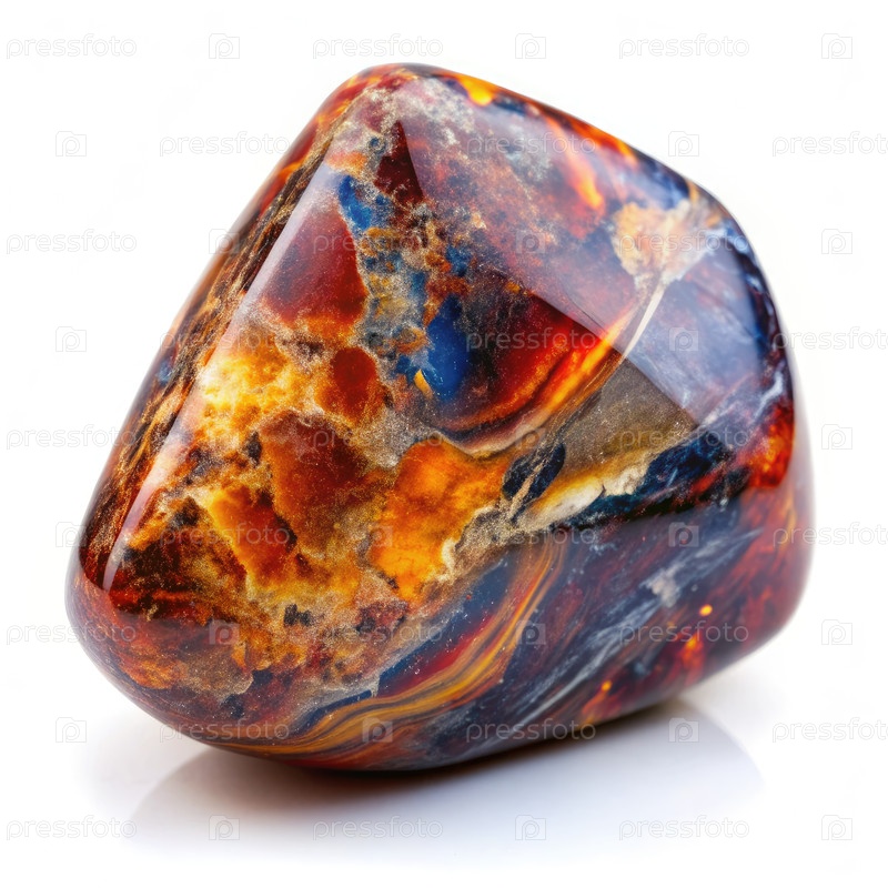 Ближайшее изображение полированного камня питерсита на белом фоне. генеративный ИИ