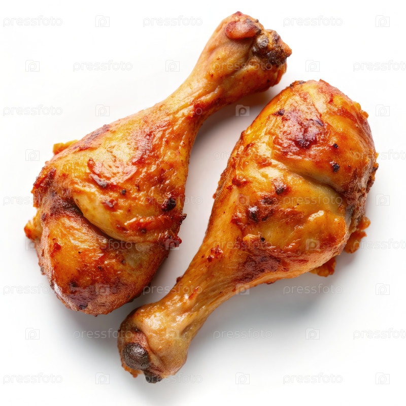 Главное изображение двух жареных куриных ножек на белом фоне