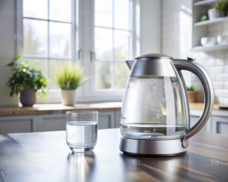 Электрический чайник с водой на кухонном столе