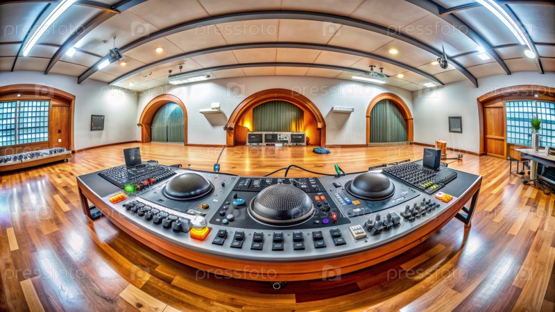 Просторная ди-джей студия с современным оборудованием и деревянный пол в дневное время. генеративный ИИ