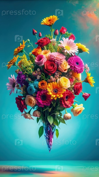 Вибрирующий букет красочных цветов отображается на ярком зеленом фоне