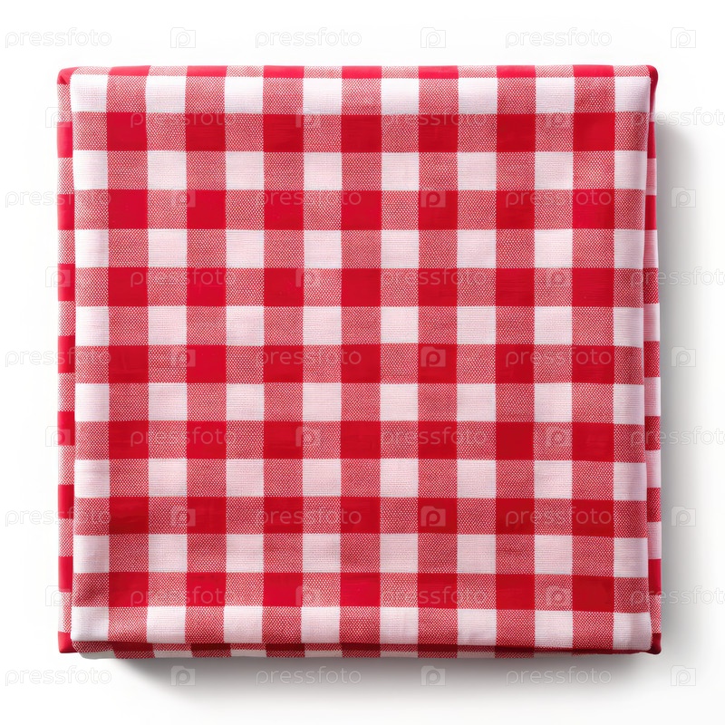 Красное и белое квадратное пикничное покрывало складывается на белом фоне