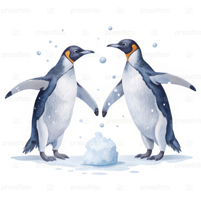 Два пингвина сражаются в арктическом снежном мяче