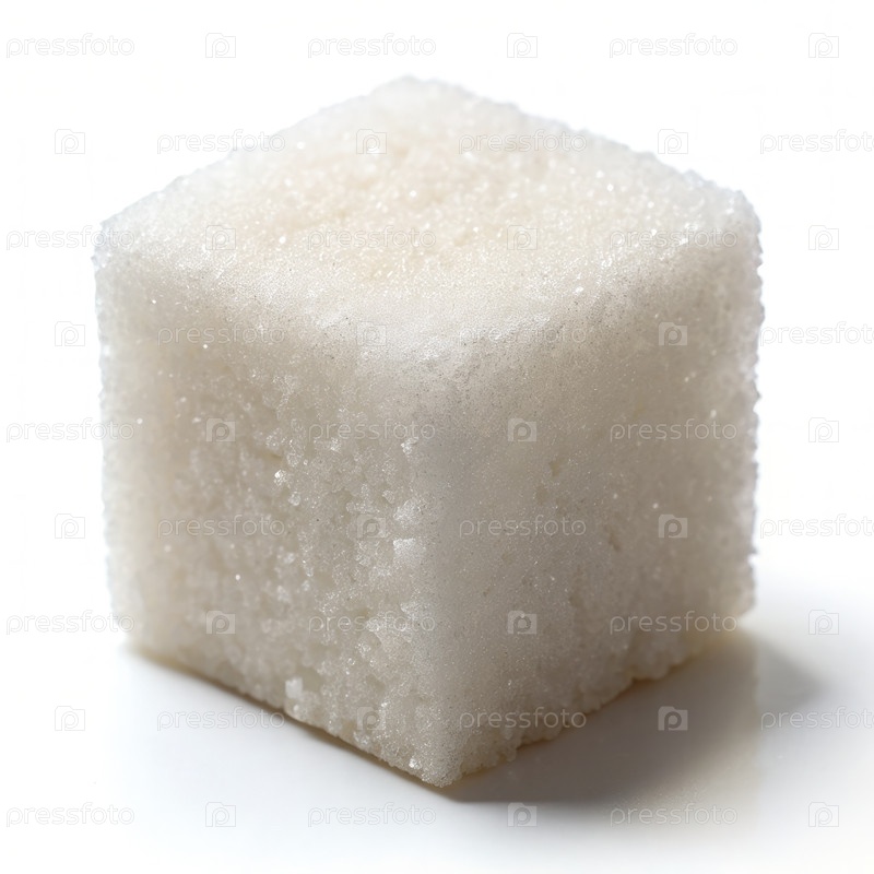 Одинокий кубик белого сахара, изолированный на белом фоне