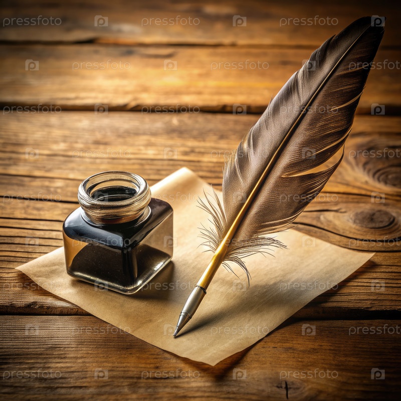Quill Pen и Inkwell на деревянном столе. генеративный AI
