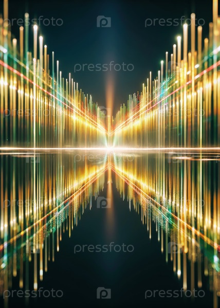 Вибрирующие высокоскоростные хроматические реверберации, захваченные в отражающей городской среде ночью
