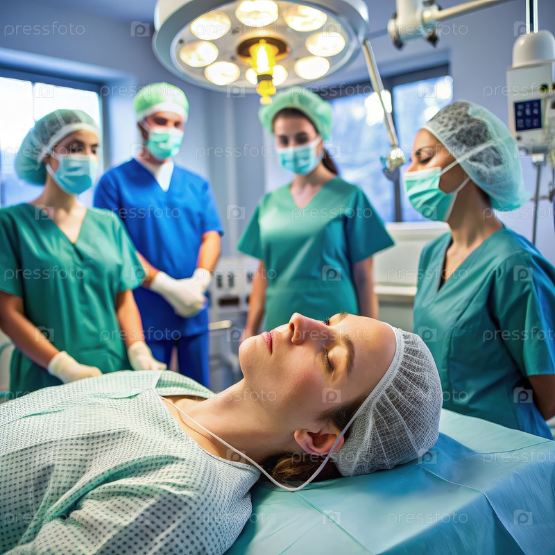 Бессознательный пациент, проходящий операцию с медицинскими специалистами