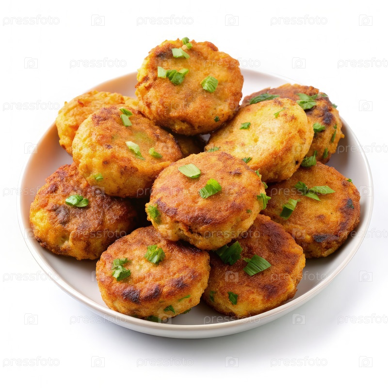Вкусные фрикадельки Фада-Фева подаются на тарелке со свежими травами