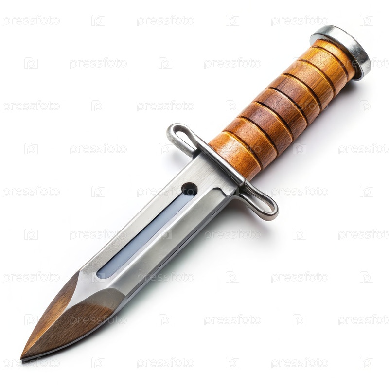 Тренч-нож с деревянной ручкой на белом фоне