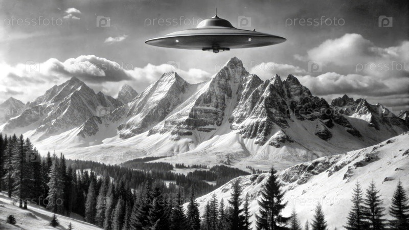Неопознанный летающий объект, паривший над заснеженными горами в ясный дневной день