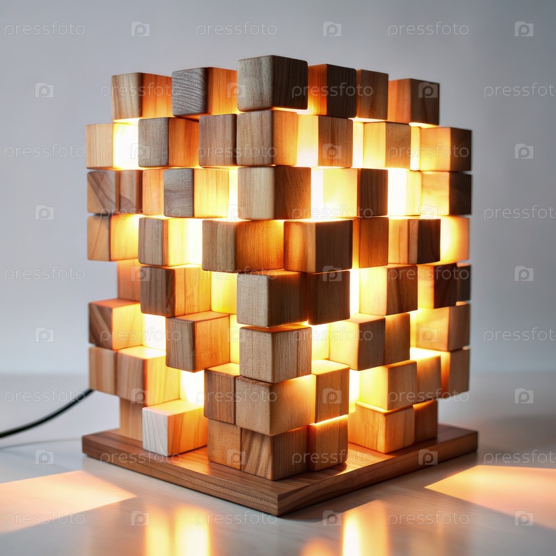 Уникальный деревянный светильник с дизайном в стиле пикселей, освещающий современное внутреннее пространство в вечерние часы