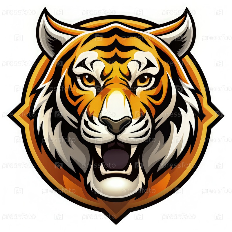 Иллюстрация свирепого лица тигра, сделанная смелыми цветами и сильными линиями