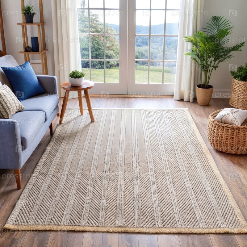 Казуальный хлопковый плоскоткажный ковер в гостиной с естественным светом
