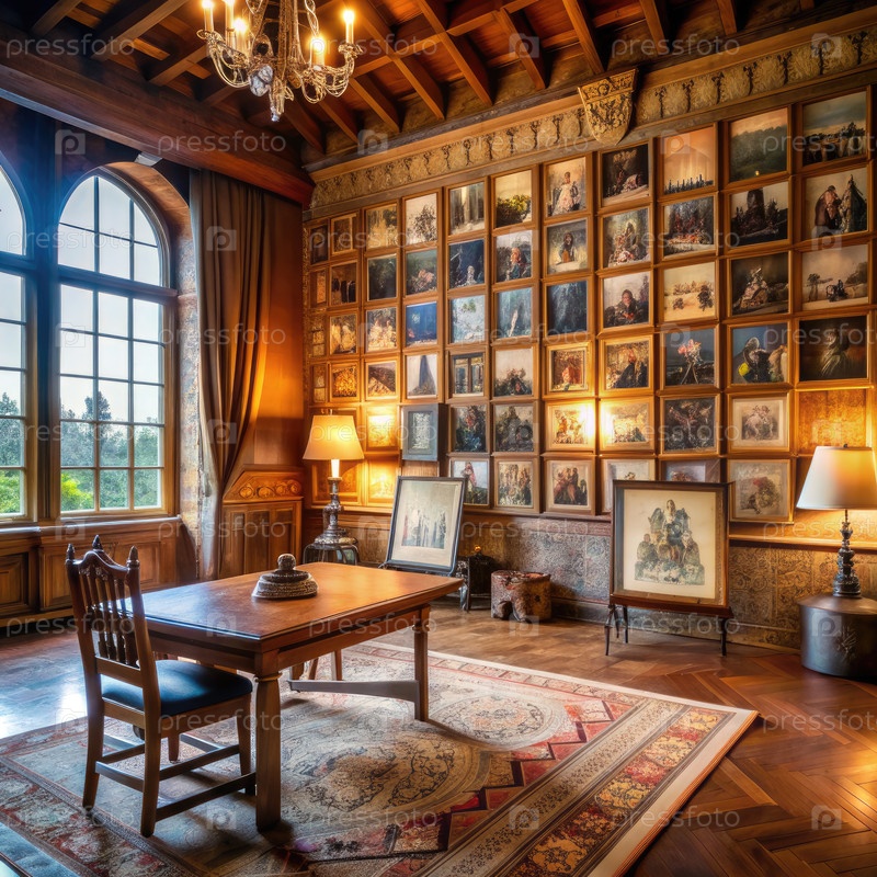 Комната, заполненная сюжетными досками в историческом замке